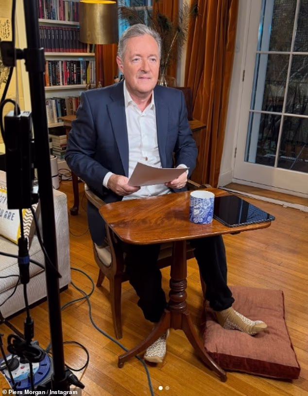 Piers Morgan voltou a filmar seu programa devido a problemas de saúde, pois revelou que estava filmando em casa na segunda-feira.