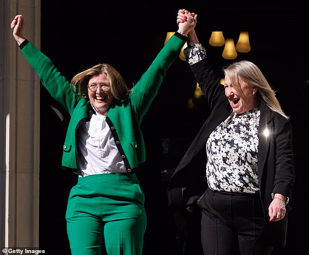 Susan Smith e Marion Calder, For Women Scotland, comemoram após sua histórica vitória no tribunal contra o governo escocês no início deste ano
