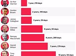Gordon Brown, que deixou o cargo em maio de 2010, serviu um total de 2 anos e 318 dias em Downing Street após suceder a Sir Tony Blair.
