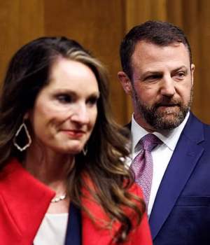 O senador dos EUA Markwayne Mullin (R) e sua esposa Kristy Mullin (L) chegam para uma audiência para o cargo de Secretário de Segurança Interna dos EUA no Capitólio dos EUA, Washington, DC, EUA, 18 de março de 2026.