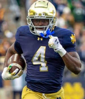 O produto Notre Dame teve 1.372 jardas corridas e 18 touchdowns em 2025 e três touchdowns recebidos.