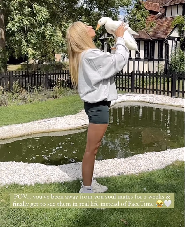 Em uma foto compartilhada nas redes sociais, o pato de Stacey fica sentado pacificamente em sua casa de campo em Essex