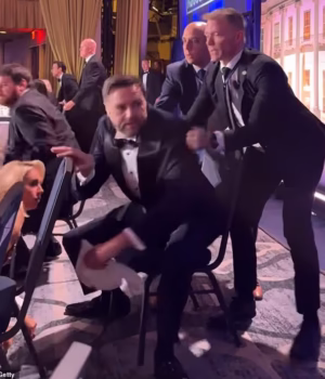 As imagens do jantar mostram agentes do Serviço Secreto agarrando Vance pelos ombros e puxando-o para fora do palco segundos após os tiros terem sido disparados.