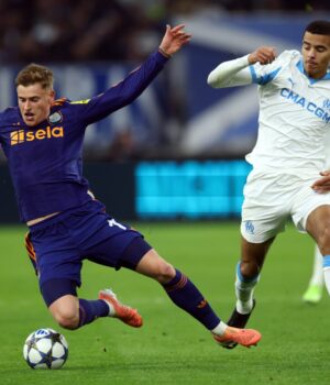 Gerônimo Rulli; Facundo Medina, Leonardo Balerdi, Benjamin Pavard; Igor Paixão, Quinten Timber, Pierre-Emile Hojbjörg, Timothy Weh; Amin Gouri, Pierre-Emerick Aubameyang, Mason Greenwood. (A equação)