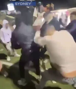 Na filmagem original Mosman CollectiveUm grupo de homens e mulheres tenta intervir, um grupo de adolescentes pode ser visto lutando.