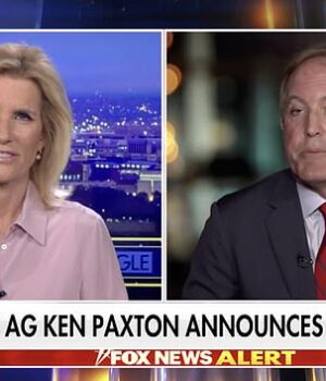 O procurador -geral do Texas, Ken Pacston (à direita), declarou que seria candidato ao Senado dos EUA contra o senão republicano John Cornin em Laura Ingraham (à esquerda) Fox News Ingraham Angle
