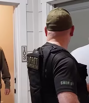 O xerife Mike Chitwood compartilhou imagens da prisão, que revelaram o momento em que os oficiais de Armas e Táticas Especiais (SWAT) exigiram a rendição de Williamson e Plowden em um procedimento de anúncio em sua casa.