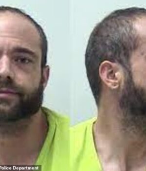 Matthew Regnier (foto), 33 anos, ex-professor de artes do Colorado, foi preso na sexta-feira ‘completamente nu, ensanguentado e segurando uma criança’ depois de supostamente esfaqueá-lo com uma faca feita de chifre de animal.