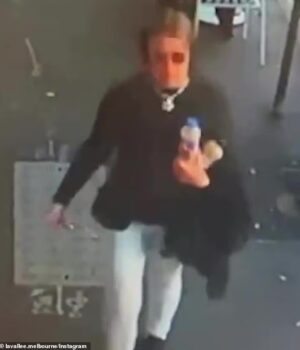 Um transeunte (foto) foi flagrado pela CCTV empurrando um prato no rosto de uma garçonete em um café no norte de Melbourne no Dia Anzac.