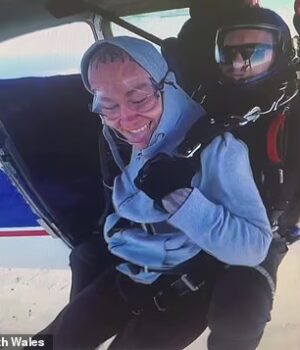 Um pequeno vídeo GoPro feito por um terceiro paraquedista solo durante o voo mostrou Welling sorrindo ao se aproximar da porta aberta do avião anexado a Hoare.