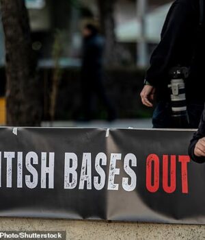 Gritos de “bases britânicas fora” ecoaram em Chipre depois que um drone atingiu a RAF Akrotiri, provocando indignação com a presença militar do Reino Unido na ilha.