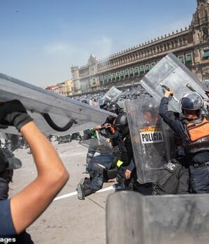 A polícia da Cidade do México foi vista lutando contra manifestantes em frente ao Palácio Nacional no sábado, enquanto milhares de pessoas se aglomeravam na residência oficial do presidente para exigir sua renúncia.