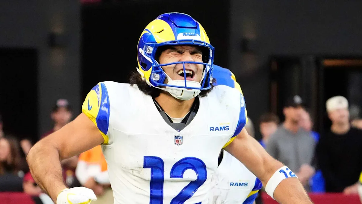Puca Nacua teve um ótimo desempenho na grande vitória dos Rams sobre os Cardinals no domingo, fazendo recepção contestada após recepção contestada.