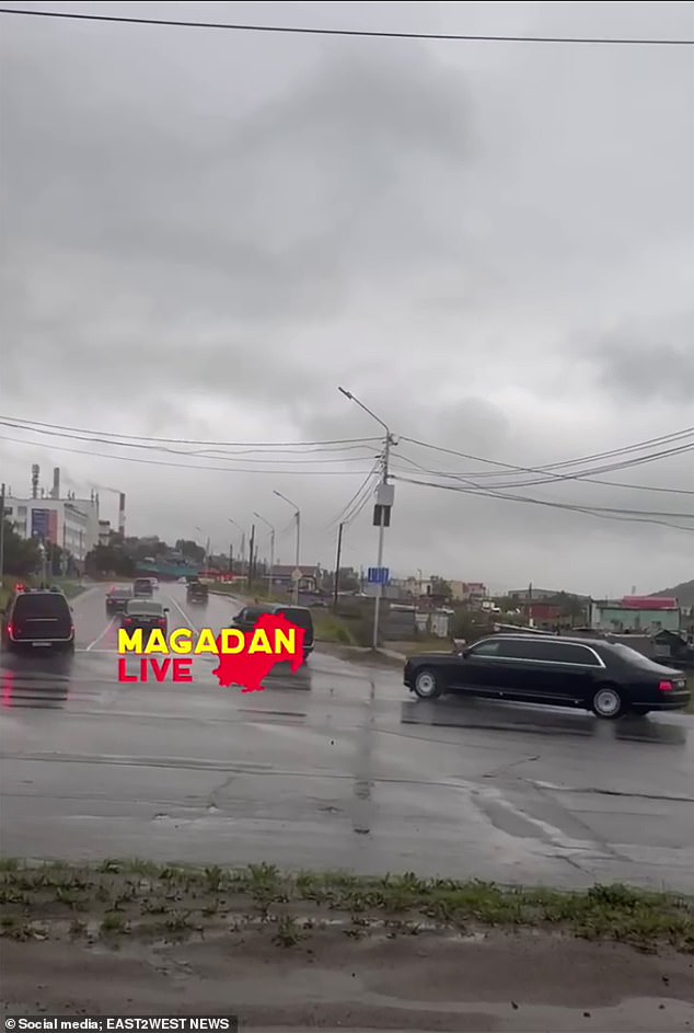 MaisO presidente do usuário, Vladimir Putin, foi visto viajando pela costa do Pacífico antes de seu cume muito esperado com Donald Trump no Alasca, uma enorme caravana espalhada pelas estradas de silte.