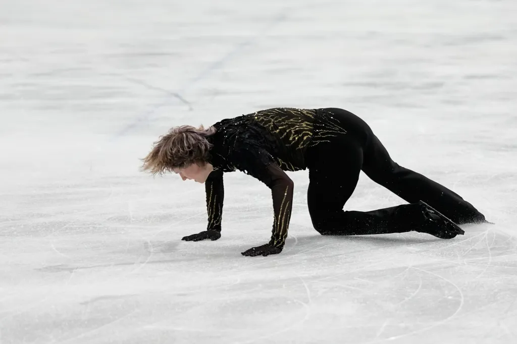 Malinin apenas dobrou um quad loop planejado com o tempo errado. Ele caiu em um quad lutz, impedindo-o de fazer a segunda metade da combinação quad lutz-triple toe loop que lhe renderia muitos pontos. E em seu último passe de salto, que deveria ser um quad salchow-triple axel de alta pontuação, Malinin só conseguiu reunir um double salchow – e caiu sobre ele.