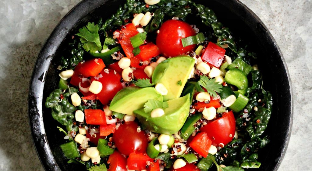 Esta tigela inclui milho doce, tomate maduro ao sol e abacate cremoso como o clássico Summer Mold. Eles são derretidos junto com um quino rico em proteínas e depois dobrados sobre uma cama da massagem. Sim, mesmo às vezes desfrute de uma ótima massagem. Esfregue as folhas com apenas uma gota de óleo e suco cítrico, com uma pitada de sal, suavize as folhas sinceras e controle seu sabor terrestre.