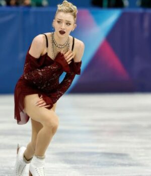 Ela é a 12ª competidora a atuar entre 24, na ordem inversa das pontuações dos programas curtos.