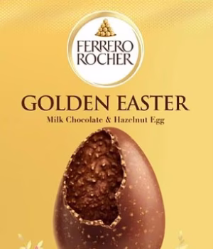 Os Ovos de Páscoa Dourados Ferrero Rocher estão no topo da lista como os mais densos em calorias, com 613 calorias por 100 gramas.