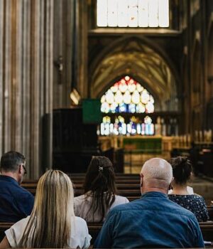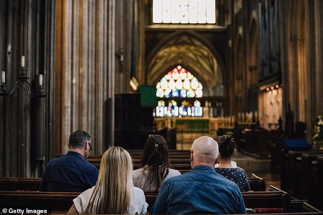 Os fiéis sentam-se nos bancos. Uma pesquisa realizada pelo Pew Research Center, um grupo de reflexão especializado em tendências religiosas, descobriu que cerca de 30% da população britânica já não se identifica com o cristianismo com que cresceu.