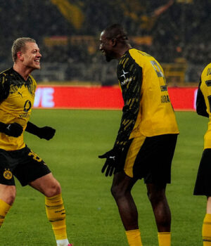 E Mogúncia? Eles eram certamente perigosos, embora em posições que pareciam suspeitas de impedimento: Lee foi negado por Kobel (10), depois Silas errou o alvo por pouco (21). Uma equipe eficiente do Borussia converteu dois chutes em dois gols, enquanto os visitantes não conseguiram marcar nenhum. E quando marcaram aos 37 minutos, Widmer estava impedido quando Lee jogou a bola para frente. Em vez disso, o quarto escanteio do Borussia levou ao terceiro gol: um cruzamento de Ryerson encontrou Guerresi, desmarcado, que usou seu poder aéreo para marcar sua terceira cabeçada no jogo (42′).