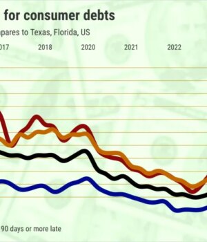 A taxa de inadimplência de 0,9% do Texas aumentou em relação aos 0,7% em 2024, mas caiu em relação aos 1% em 2015-19.