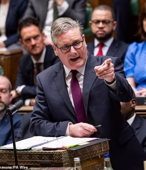 Sir Keir, rosnando indignado, duro como uma banana: — Nós definimos o processo. E então ele fez outro discurso retórico sobre a guerra.