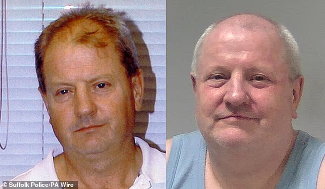 O serial killer Steve Wright (foto em 2008, à esquerda, e 2026, à direita) foi condenado na sexta-feira pela morte de sua primeira vítima – Victoria Hall, de 17 anos.