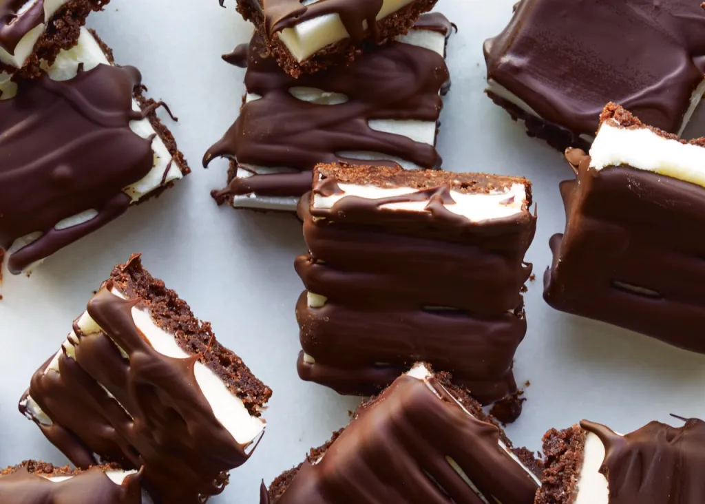 Adora hambúrgueres de hortelã-pimenta? Aqui vai um segredo: não são difíceis de fazer em casa. Comece com um biscoito amanteigado de cacau e depois adicione o recheio de menta e a cobertura de chocolate.