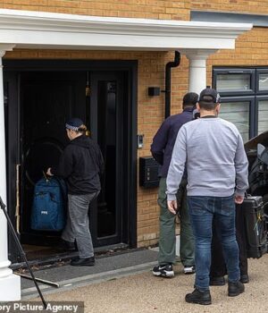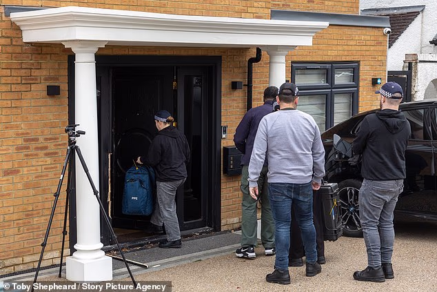 Ontem, a polícia foi vista revistando uma propriedade em Watford onde um homem de 52 anos foi preso na frente da esposa e da filha adolescente.