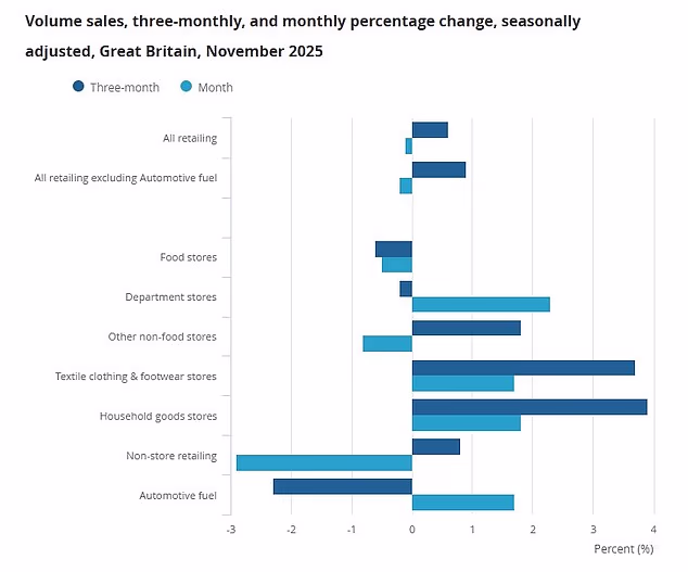 Rachel Reeves foi culpada por os compradores terem pulado as vendas da Black Friday hoje, depois que as vendas no varejo caíram no mês passado.