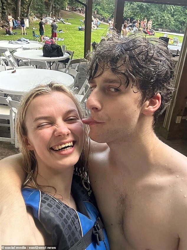 Jarutska também é visto abraçando seu namorado em um elevador, beijando na câmera e rindo com amigos com Pulside.