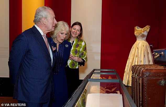 O casal apareceu na exposição ‘Queen Elizabeth II: Her Life in Style’ do Royal Collection Trust na The King’s Gallery na noite de terça-feira.
