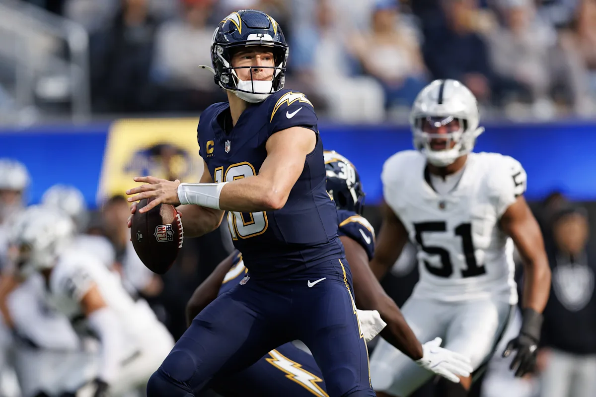 Os running backs Omarion Hampton (tornozelo) e Hassan Haskins (músculo posterior da coxa), o wide receiver Quentin Johnston (ombro) e os atacantes Trey Pipkins (costas) e Jamari Saller (ombro) foram todos limitados. Todos os relatórios esperam que Hampton faça seu tão esperado retorno a campo esta semana, depois de perder os últimos sete jogos devido a uma fratura no tornozelo.