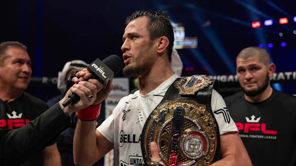Nurmagomedov, que entrou no PFL como atual campeão dos leves do Bellator, já conquistou sete títulos consecutivos entre duas campanhas, embora o resultado de sábado conte oficialmente apenas como a primeira defesa de seu atual reinado no PFL. O destaque de 27 anos conquistou o cinturão inaugural dos leves do PFL com uma segunda vitória sobre Paul Hughes em outubro passado.