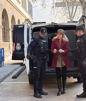Imagens divulgadas pela mídia espanhola mostraram Jeffery sendo levada algemada por dois policiais a um tribunal em Palma na quinta-feira.