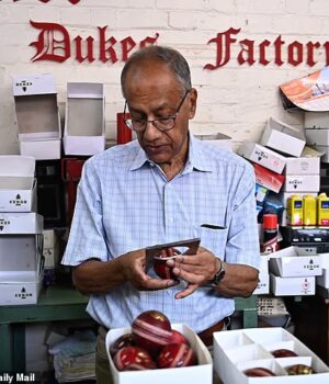 Dilip Jajodia na fábrica da Dukes em Walthamstow, norte de Londres