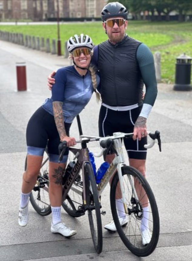 Bradley Wiggins com sua nova namorada Courtney Knott – uma deslumbrante colega ciclista a quem ele credita ter reacendido seu amor pelo esporte