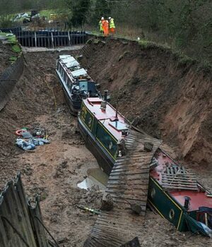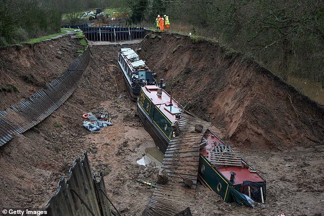 Uma secção do Canal Llangollen em Whitchurch, Shropshire, desabou a 22 de Dezembro, afundando dois barcos estreitos num buraco no leito do canal e chegando à costa, deixando meia dúzia de outras pessoas encalhadas.