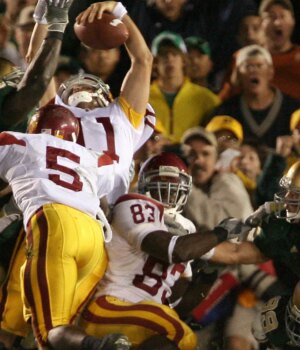 Os Trojans enfrentaram 4º e 9º em sua própria linha de 26 jardas e o quarterback Matt Leinert colocou a bola perfeitamente nas mãos do recebedor Dwayne Jarrett, que correu para a zona vermelha para um ganho de 61 jardas para manter o USC vivo.