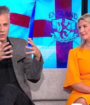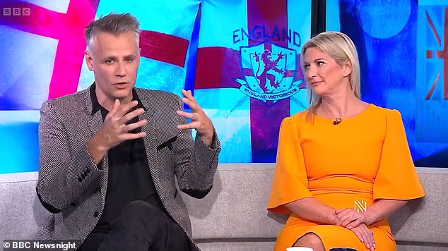 Richard Bacon (à esquerda) falou sobre a bandeira Union Jack enquanto participava do programa BBC News Night, também