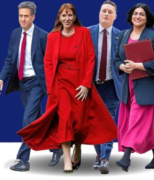 Confira esta foto composta do Sunday’s Mail. Um destes quatro monótonos poderá ser o nosso próximo primeiro-ministro, gostemos ou não. Da esquerda para a direita, Ed Miliband, Angela Renner, Wes Streeting e Shabana Mahmoud.