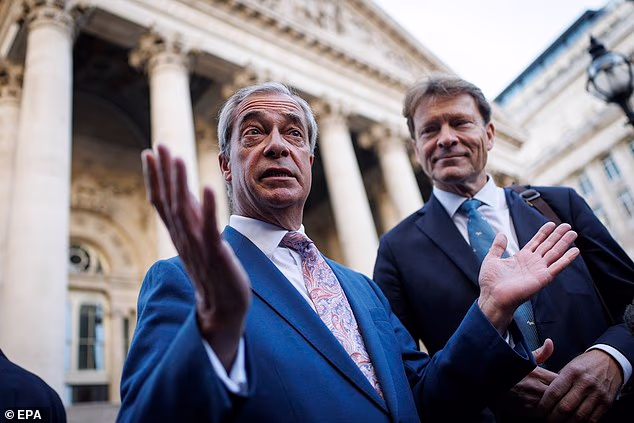 O líder reformista do Reino Unido, Nigel Farage, e seu vice, Richard Teese, após reunião com o governador do Banco da Inglaterra, Andrew Bailey, em setembro