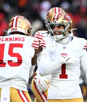 Ricky Pearsall Jr. está de volta ao uniforme e ativo hoje para o jogo dos playoffs divisionais da NFL dos 49ers contra o Seattle Seahawks.