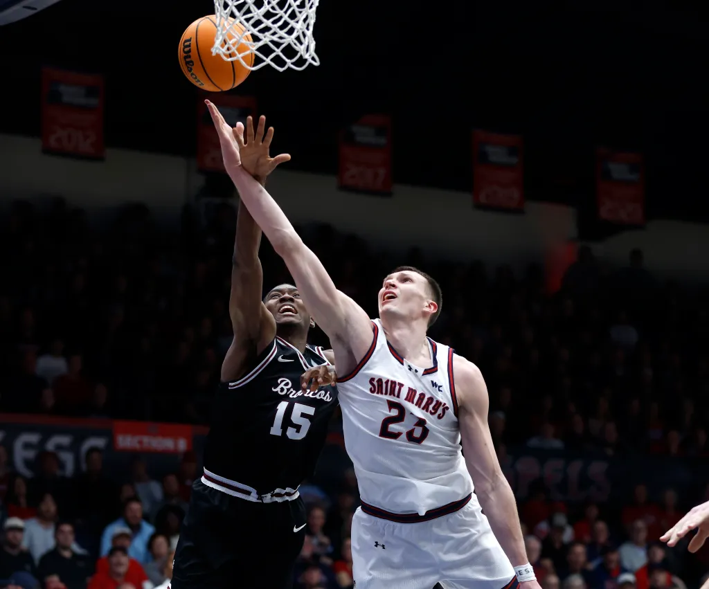 Mary’s usou uma sequência de 19-2 em dois tempos e um desempenho de rebotes dominante para vingar uma derrota anterior em Santa Clara e vencer o Broncos por 86-67 em uma batalha empatada pelo segundo lugar.