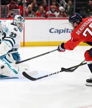 Graças em parte a uma linha superior renovada, o San Jose Sharks rapidamente transformou uma desvantagem de um gol em uma vantagem de dois gols no segundo período para ajudá-los a obter uma vitória impressionante por 3 a 2 sobre o Washington Capitals na quinta-feira.