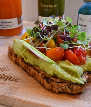 Avocado Smash continua sendo um best-seller no primeiro local Toasty da Bay Area, em Danville, inaugurado em 2024. Essa criação exclusiva é coberta com pão rústico (disponível sem glúten) com abacate, tomate marinado, fatias de raiz de melancia e microgreens. As opções incluem salmão defumado, PB Crunch, burrata de tomate, caranguejo picante, atum toscano, torrada grega e italiana com 3 queijos.