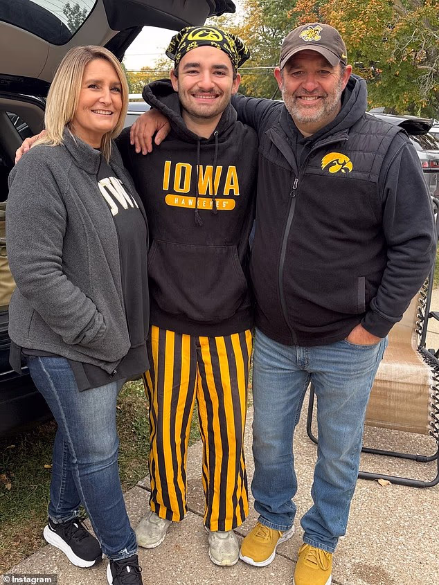 Tanner Ramsey está estudando ciências do exercício na Universidade de Iowa. Seus pais o visitaram na faculdade e até o levaram para jogar futebol