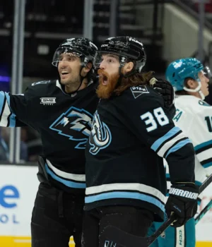 SALT LAKE CITY (AP) – Nick Schmaltz vem de uma noite sem gols nos primeiros quatro jogos do Utah Mammoths nesta temporada. Ele estourou em grande estilo na noite de sexta-feira contra o San Jose Sharks.