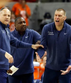 O técnico de basquete masculino do Kentucky, Mark Pope, foi multado em US$ 25 mil pela SEC na terça-feira, depois que o microfone no pódio de Auburn captou comentários que ele fez ao diretor atlético Mitch Barnhart após a derrota dos Wildcats para os Tigers no sábado.