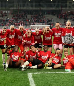 Graças à vitória fora de casa do FC Bayern Women, por 3-2, sobre o Union Berlin, a equipa de Munique garantiu novamente o título. O escudo provisório do campeonato foi amplamente comemorado ontem na capital – primeiro no campo e depois nas catacumbas de Alte Forsteri. Com hinos de terraço exuberantes em loops intermináveis e a polonesa obrigatória, o trem da moda do Bayern realmente acelerou na noite passada. No entanto, ao contrário do que a seleção de músicas poderia sugerir, eles ainda tiveram que pisar no acelerador. No sábado, o Bayern defrontará o Barcelona na UEFA Women’s Champions League, dando-lhes uma plataforma sólida para as esperanças de chegar à final.